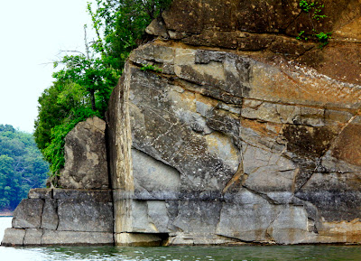The little cove in the picture below is where the bamboo grove is located. I actually got the boat inside that shallow cut. That's where I had trouble with the shaking camera. I had to pole the boat in there and keep it off the rocks on the shore line. I just couldn't hold the camera steady to get good photos. I will put a few below to show how dense this bamboo grows. It is really dense. The pictures of the bamboo may be tolerable if you don't enlarge them by clicking on them.