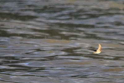 Now, if you want to get an idea of how difficult it is to keep one of these little guys in a camera lens - curl your index finger down and touch the tip of your thumb. Then, find a swallow and try to keep him in the circle formed by your thumb and index finger. Then imagine reducing that hole your looking through to the size of a dime. Now keep the swallow in that hole. Now, get on a rocking boat and do it. That's about what you see through a 500 milimeter camera lens.