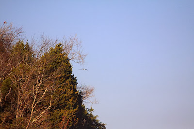 I turned the Gheenoe around and headed for the dock. I was very satisfied with the way this big lens handled. I feel confident I can get some great wildlife shots with it. When I looked up in the air, an adult eagle passed over and headed for the far shoreline. He was almost gone by the time I extracted the camera from the case. That's him - that tiny line to the right of the trees. Oh well. Take my word for it. It was a bald eagle.