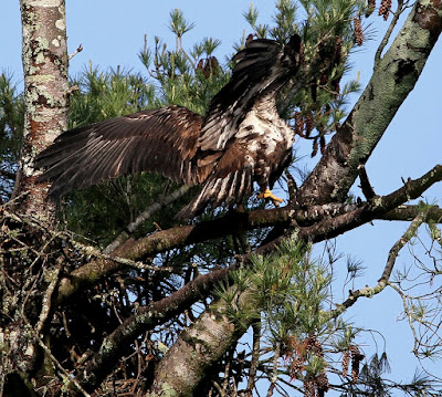 They were jumping up and down on the edge of the nest and flapping their wings in anticipation of their first flight. The mother is a hundred yards away in the top of a tree shrieking out loudly. The youngsters reply with their own unending chirping. Soon the temptation will be too great to resist and they will be off, one by one following each other, leaping off the limbs as they test their wings, and they will struggle to maintain their balance when they alight for the first time on a round tree limb. There's much to learn. I pray God blesses them all.
